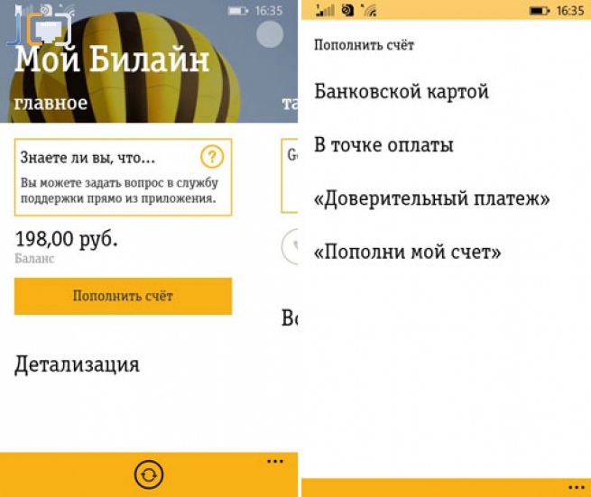 Если Вы не намерены оформлять автоплатеж, то удобнее всего делать пополнение Билайн банковской картой с приложения оператора в телефоне, привязав там данные карты. Такое приложение доступно на всех устройствах – Андроид, Windows Mobile, iOS. В любом случае Вам придется как минимум раз в месяц пользоваться личным кабинетом, а приложение делает его доступным, где бы Вы ни находились. И огромный плюс – даже если доступ к интернету закрыт, приложение оператора все равно будет работать и позволит внести абонентскую плату, чтобы разблокировать остальные функции.