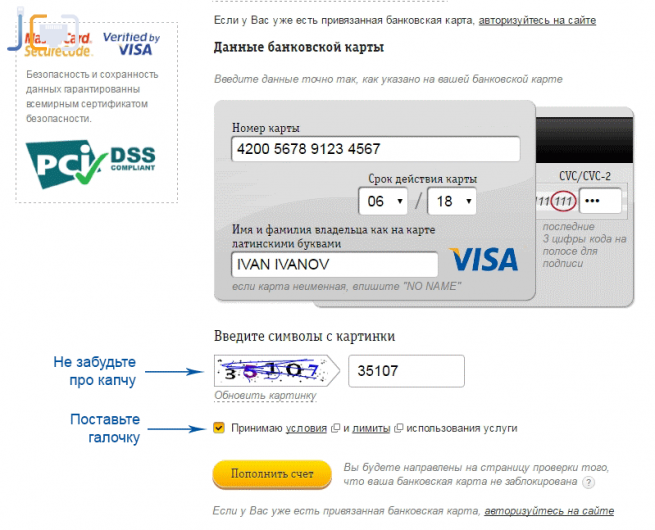 Пополнение счета Билайн любой банковской картой проходит без дополнительных процентов и надбавок через сайт оператора. Если же платеж вносить с сайта или через приложение Вашего банка, то он может снимать комиссию. Впрочем, Вас заранее предупредят о том, какую сумму банк удержит, будьте внимательны.